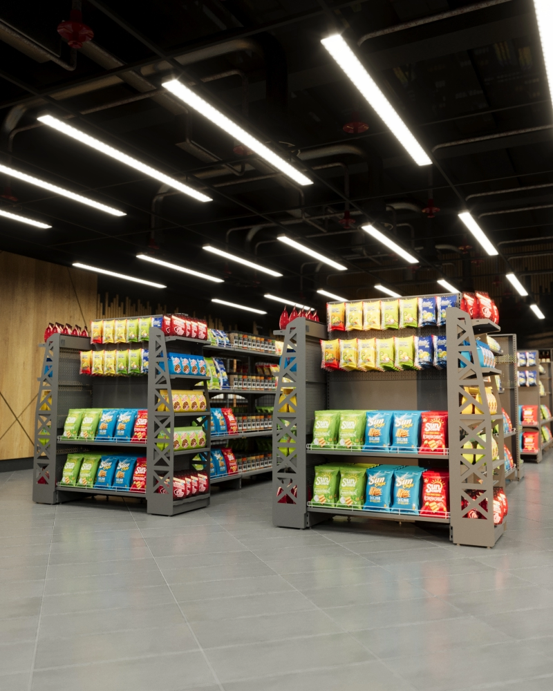 Площадь помещения. Нужно оценить размеры зала и высоту потолков. Конструкции подбираются в зависимости от планировки и торговых задач: пристенные, угловые, островные и торцевые стеллажи могут использоваться как в небольших магазинах, так и в просторных супермаркетах.