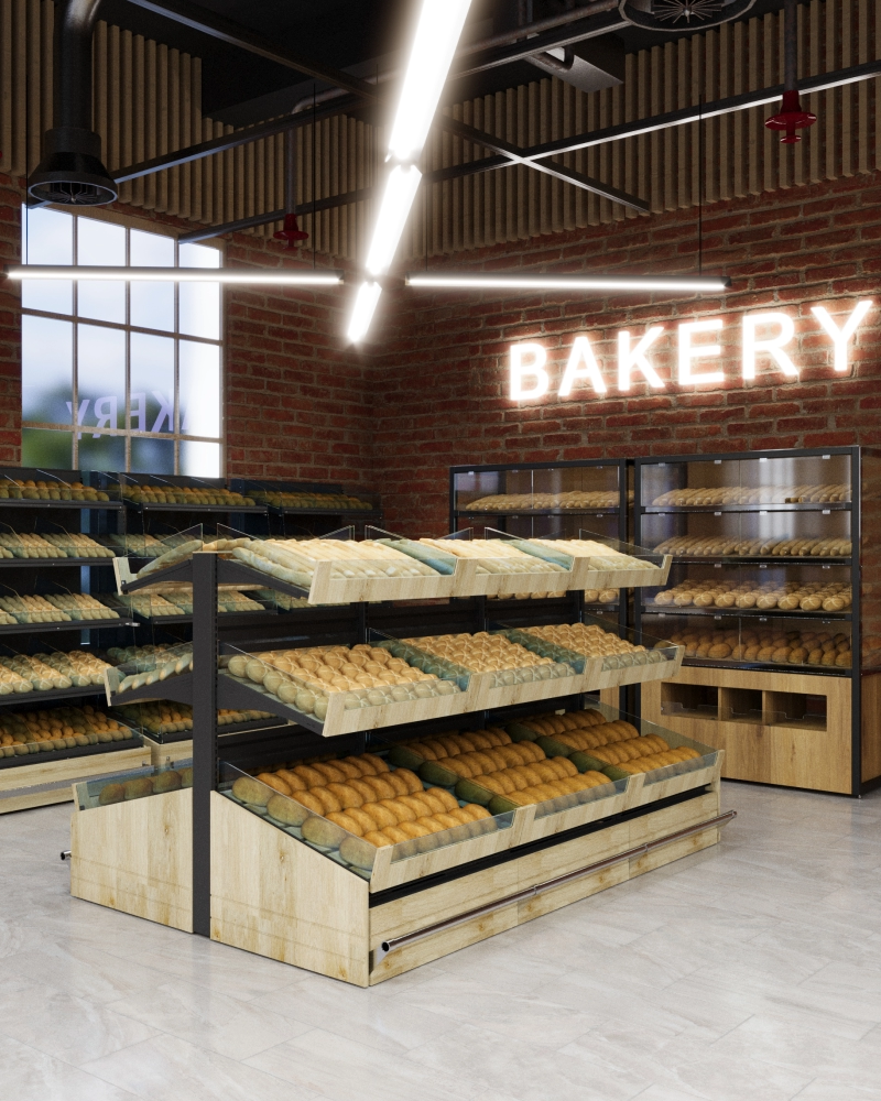 1. Хлебные – полки оборудованы под углом для лучшего обзора продукции, а также имеют разделения на секции для разных видов выпечки. Эта конструкция сохраняет свежесть хлеба и гарантирует удобство для покупателей. Применяются в торговых точках различного формата — от небольших магазинов до супермаркетов и пекарен.