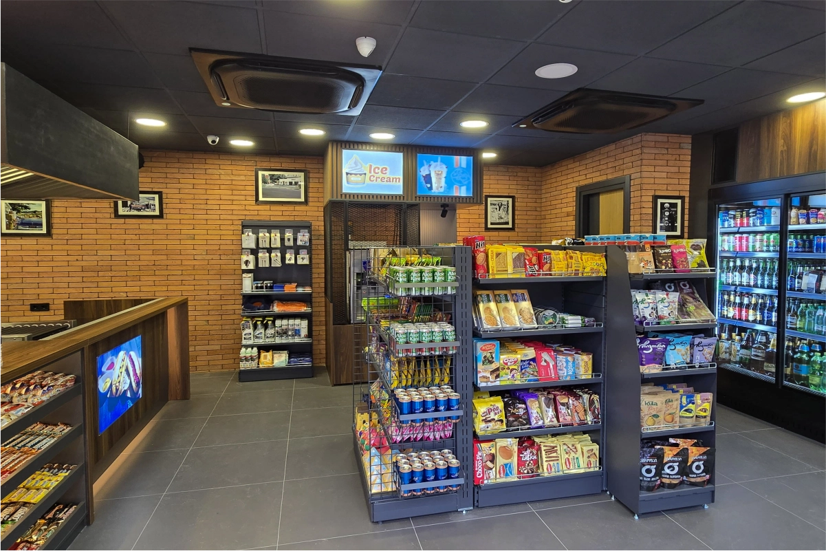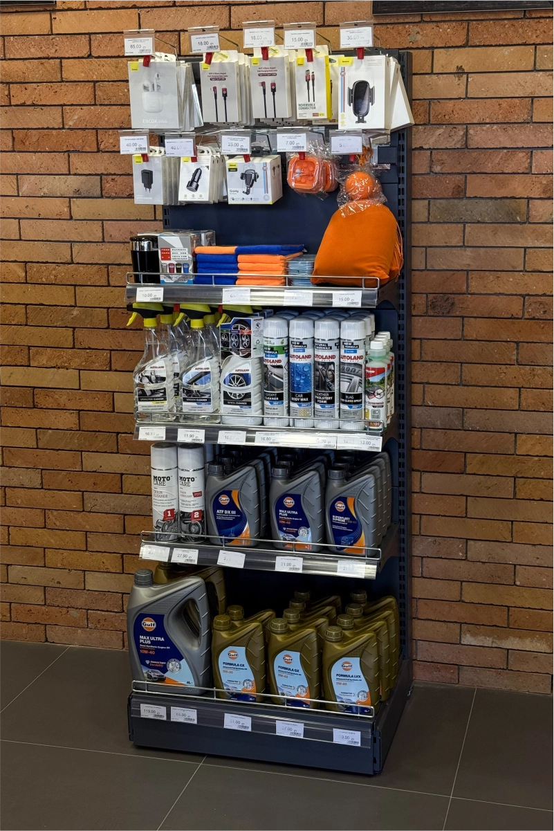 Для АЗС Gulf в г.Тбилиси с торговой площадью 46,32м2, компания 4RM Systems поставила и установила торговое и складское оборудование, оптимально адаптированное под компактное пространство и специфику быстрого ритейла.